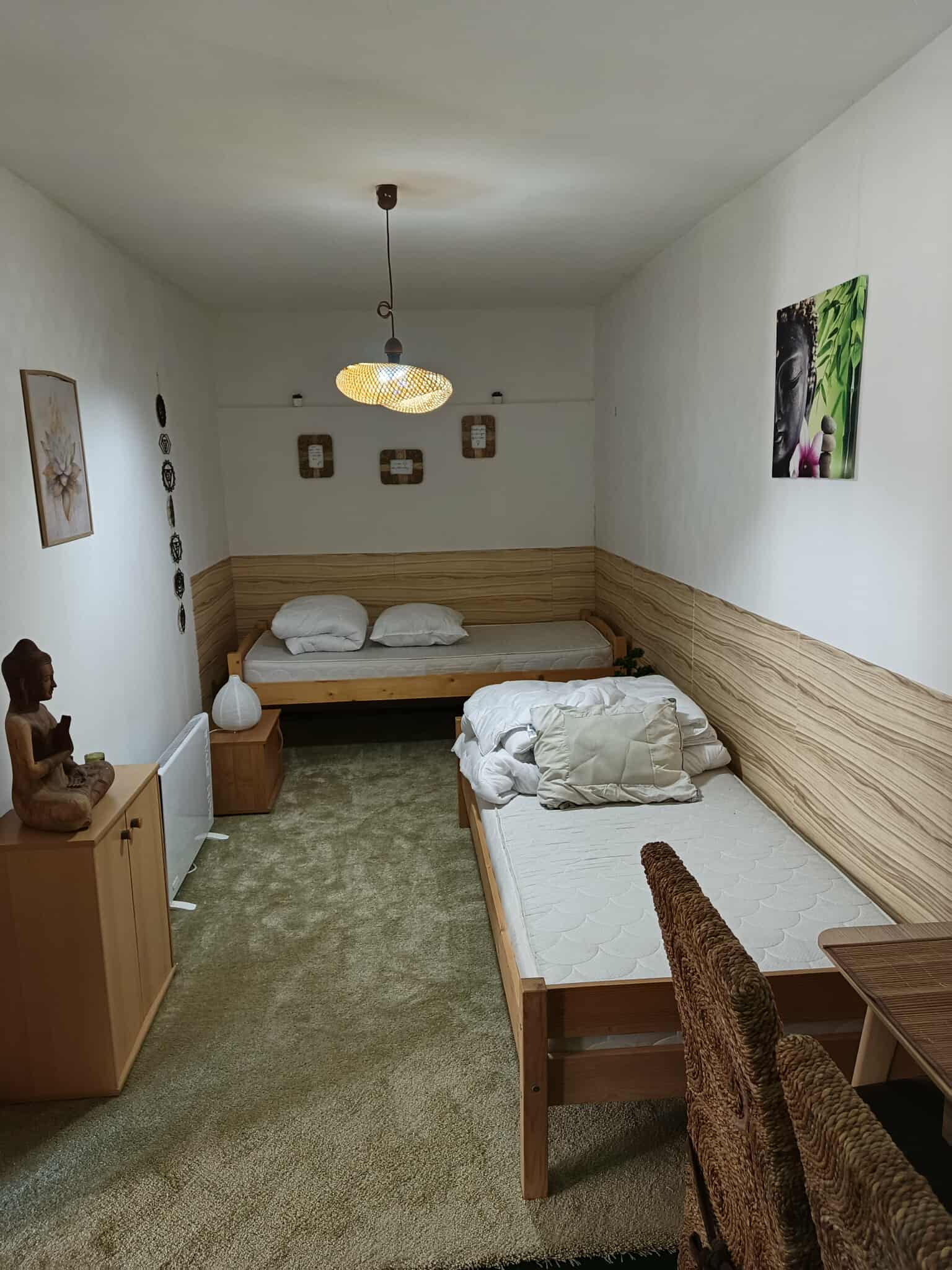 Je možné domluvit snídaně i plnou penzi. Zdravé bezmasé pokrmy přizpůsobené vašim chutím i dietám. (Plná penze 450 Kč)