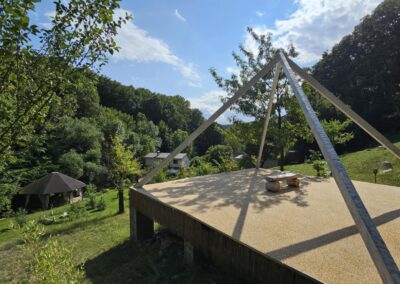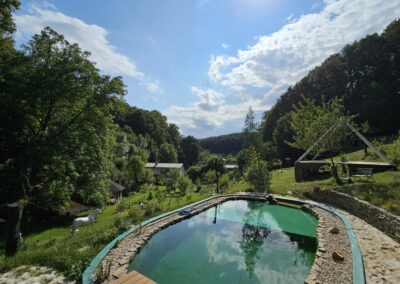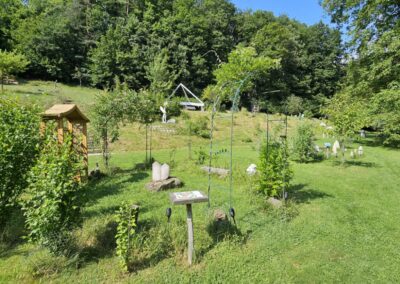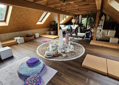 Je vám k dispozici také rozsáhlá portálová a meditační zahrada, koupací jezírko se slanou vodou, meditační pyramida, altán Maloka, či meditační sál.